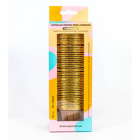 Elaboradas en papel de calidad alimentaria, se trata de unas cápsulas con interior metalizado y reborde de color dorado.