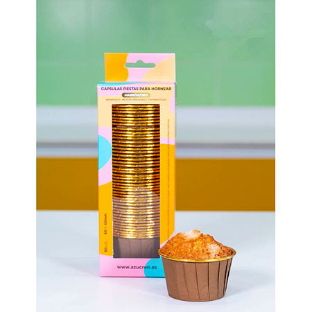 Paquete de 50 capsulas rígidas de cartón con interior metalizado, especiales para hornear cupcakes o muffins de tamaño estándar, del Fabricante Azucren.