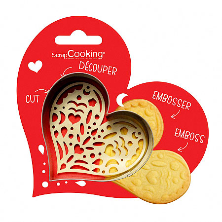Original y práctico Cortador de galletas con marcador de madera, ideal para elaborar de forma sencilla, detalladas galletas con forma de corazón del fabricante ScrapCooking.