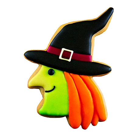 Cortador de galletas con forma de Bruja de Halloween en su escoba, ideal para sorprender con unas bonitas galletas para el día de Halloween o cualquier otra celebración. Fabricante Wilton.