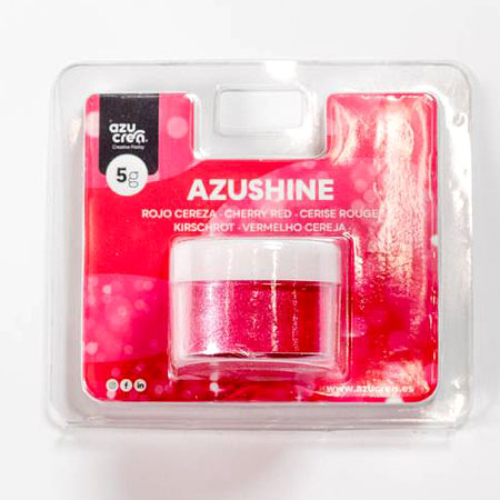 Purpurina comestible en polvo de color rojo con destellos multicolor, del fabricante Azucren.