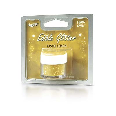 Purpurina 100% comestible de color amarillo limón de la marca Rainbow Dust, perfecta para dar un toque de brillo y color a todos tus dulces.