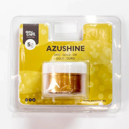 Purpurina comestible en polvo color dorado con destellos multicolor, del fabricante Azucren.